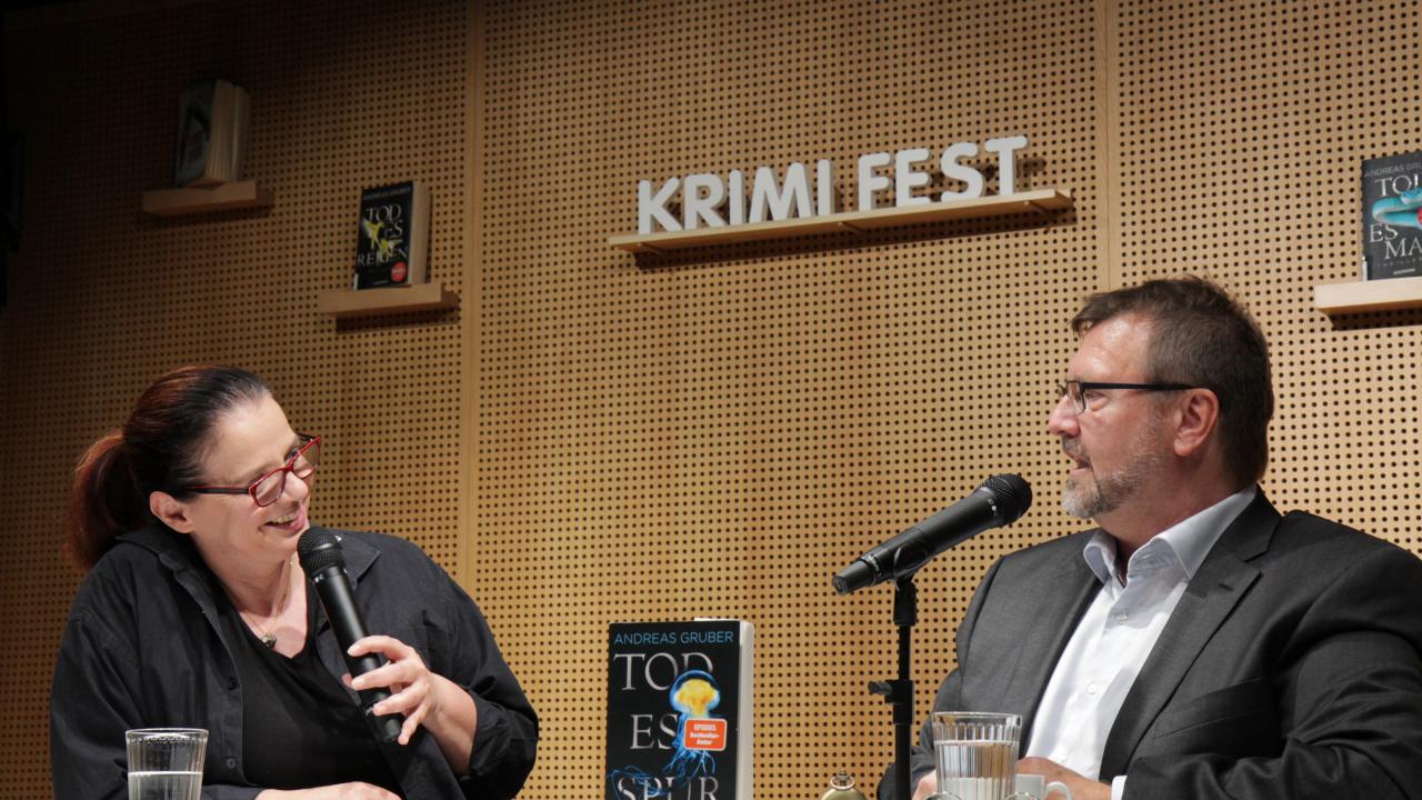 Der österreichische Autor Andreas Gruber, der wohl nie einen Cosy Crime schreiben wird – dafür aber eher etwas Düsteres mit schwarzem Humor à la Kill Bill oder einen "Katzenkrimi"– begeisterte sein Publikum mit einem Mix aus Lesung und kabarettistischer „Redung“. Statt viel vorzulesen, führte er die Krimifans unterhaltsam durch seine Thriller-Welt.